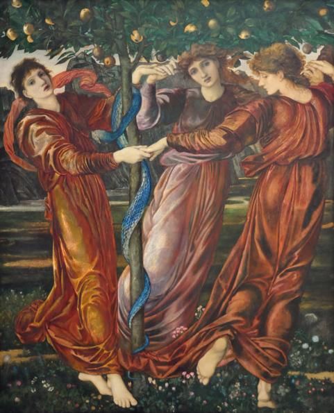たぶんバーン=ジョーンズは、ヘスペリアー(夕方の女)、アイグレー(明るい女)、エリテュイア(赤い女)の3人を描いたと思うんです。ドレスの色から。